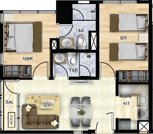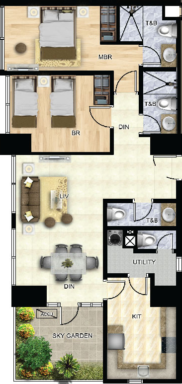 1bedroom with sky garden: 55 to 66 sqm 6 units